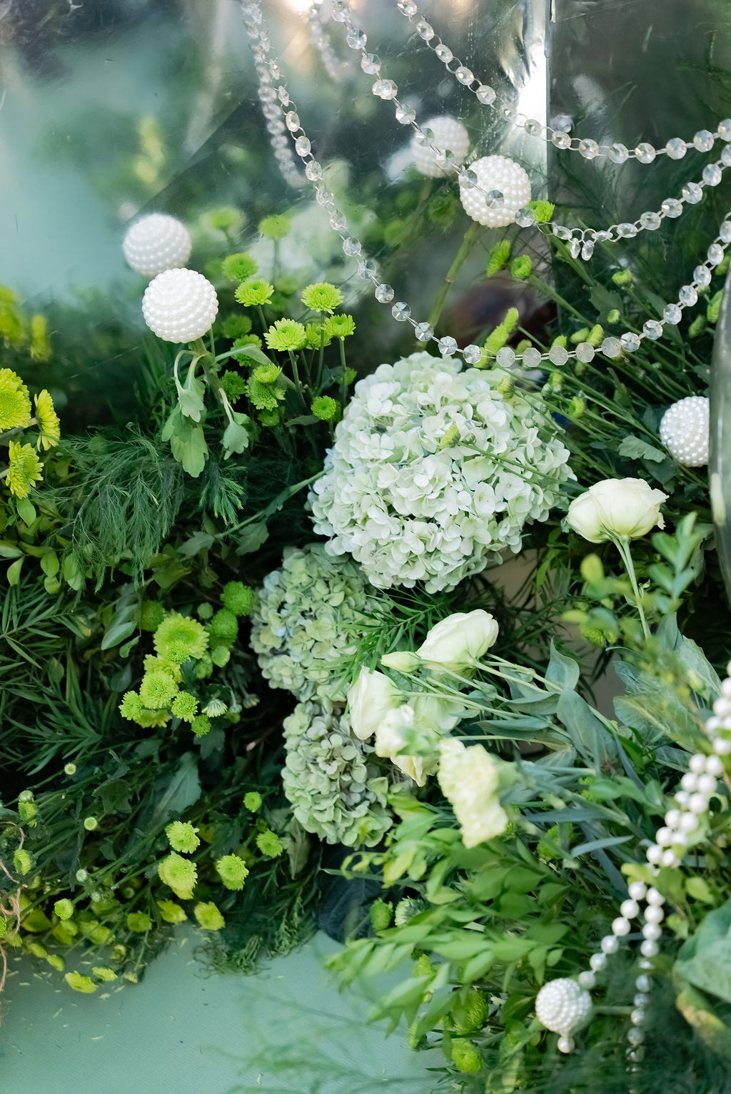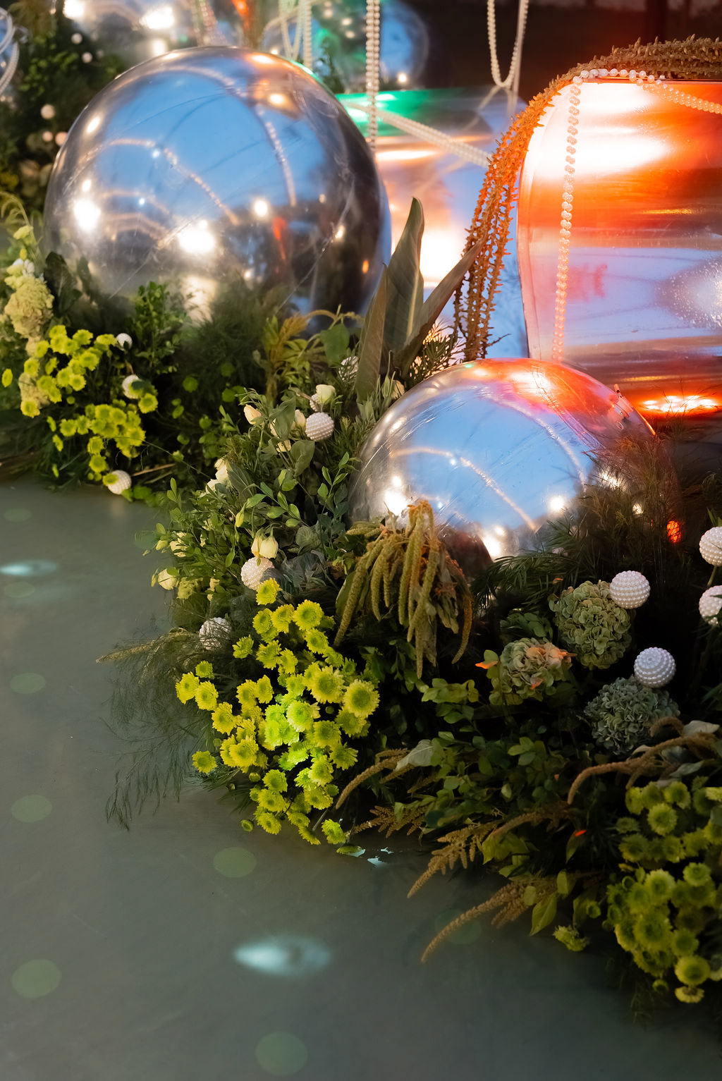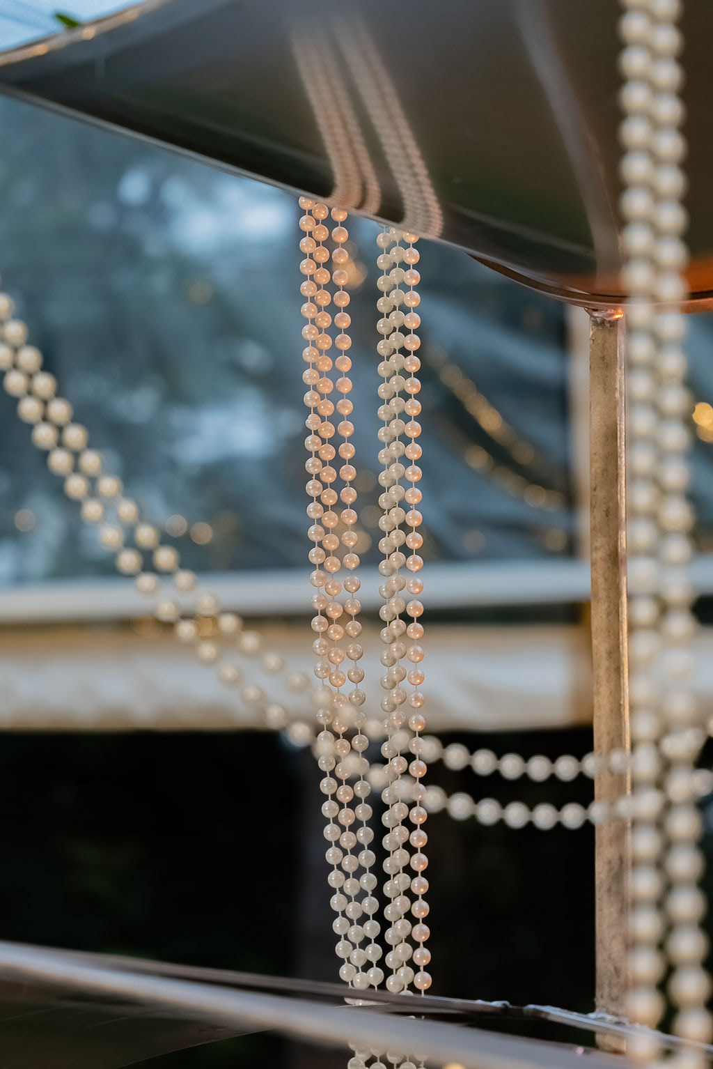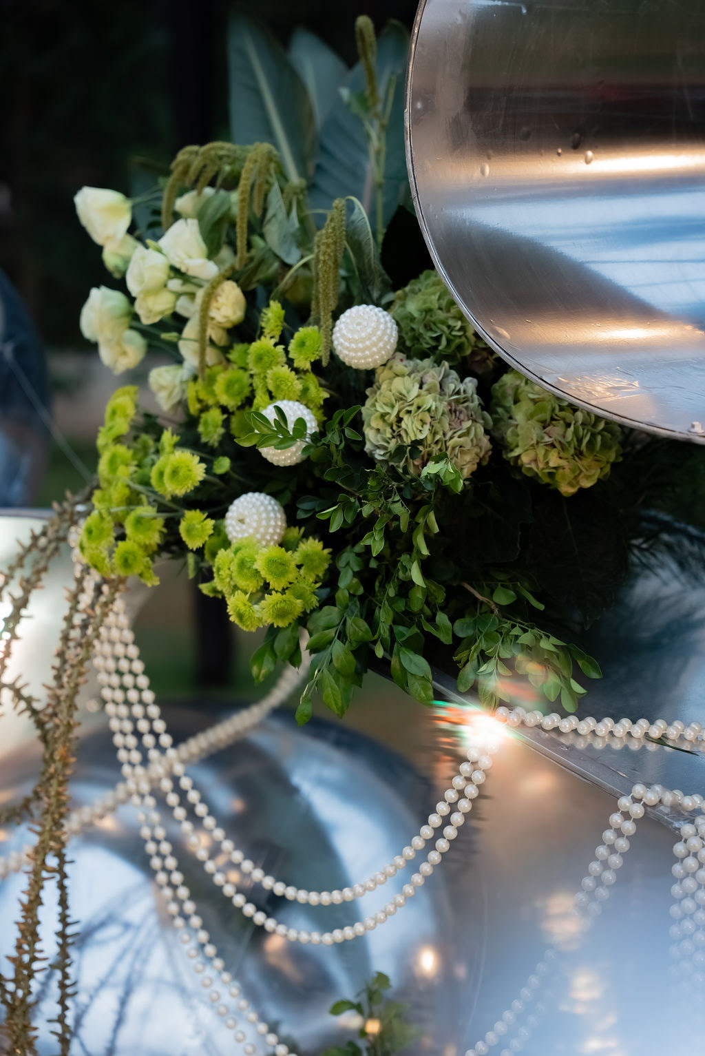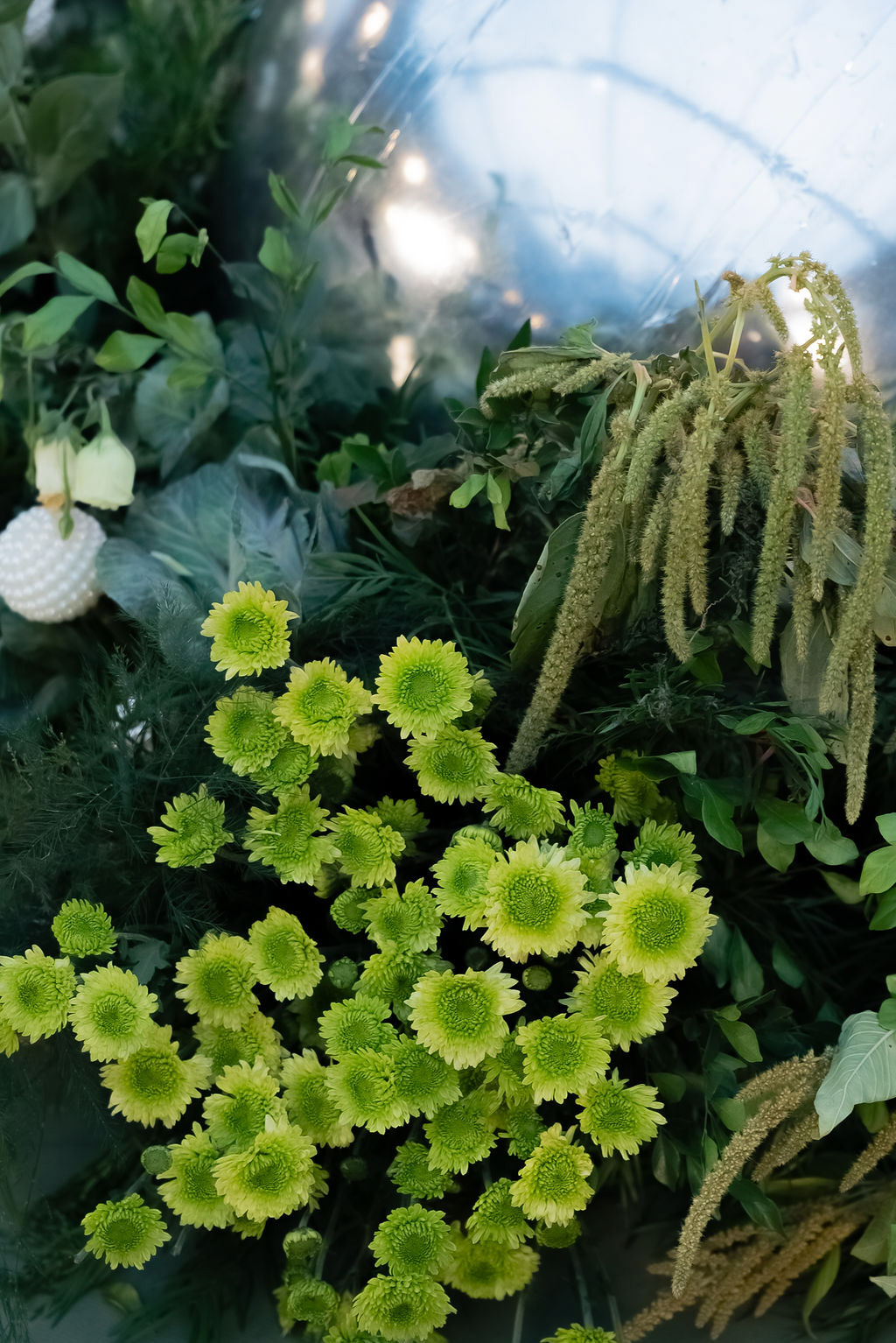 For Khanishkaa and Aadhi’s Sangeeth, we chose monotones to create a canvas that allowed the couple to truly shine. The intention was to build a backdrop that felt both subtle and striking, quietly holding space while still making a statement. Layers of green ran through the florals and the dance floor, grounding the design in the open lawn and allowing the landscape to become part of the story. Sculptural metal forms and reflective spheres introduced movement and light, catching every glow and amplifying the joy of the night. Pearl strings and crystal details were woven through the structure, adding depth, drama and a quiet richness to the backdrop. As the music played and the couple danced, the curved metallic forms and the reflective elements seemed to move with them, responding to rhythm, light and celebration. The backdrop knew when to stand out and when to soften, gently framing the couple against the green lawn, the open canopy above, and the tranquil hills beyond Coimbatore. A space designed to hold celebration without overpowering it. A canvas that let love take centre stage. Decor design by @vizhamedai Production and execution by @marriagecolours Photographed by @thealaigal Venue @mangohillcoimbatore