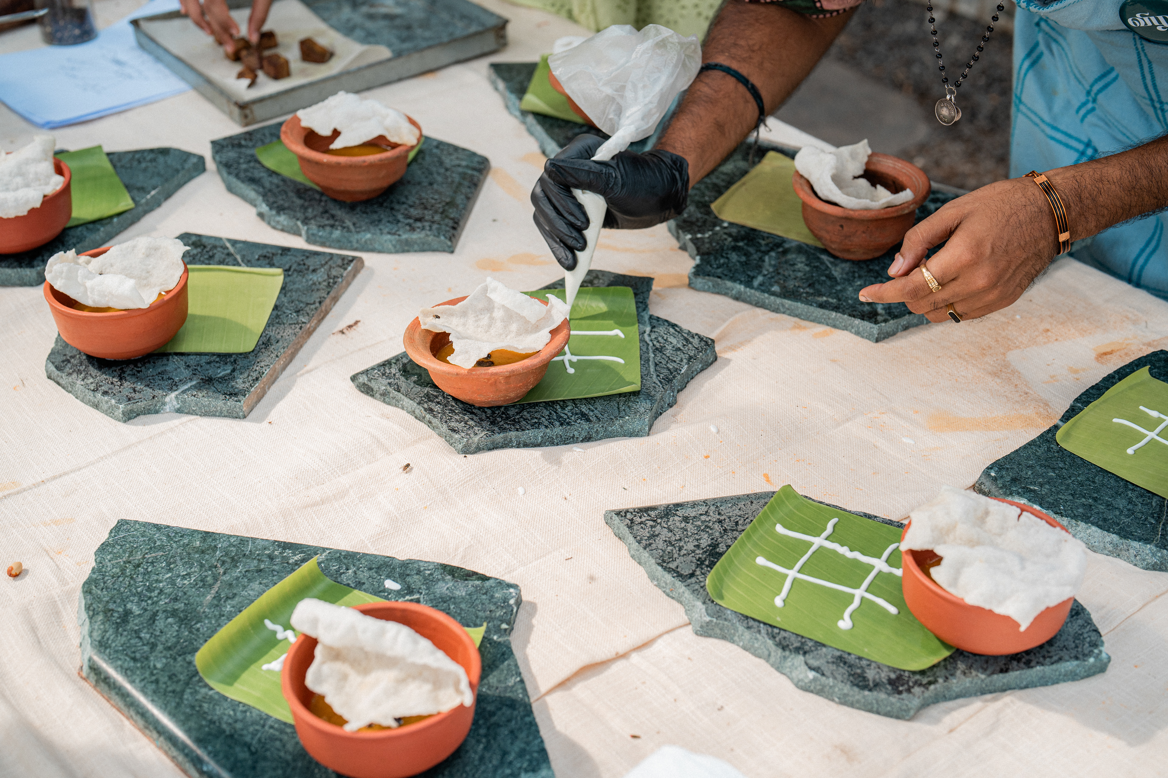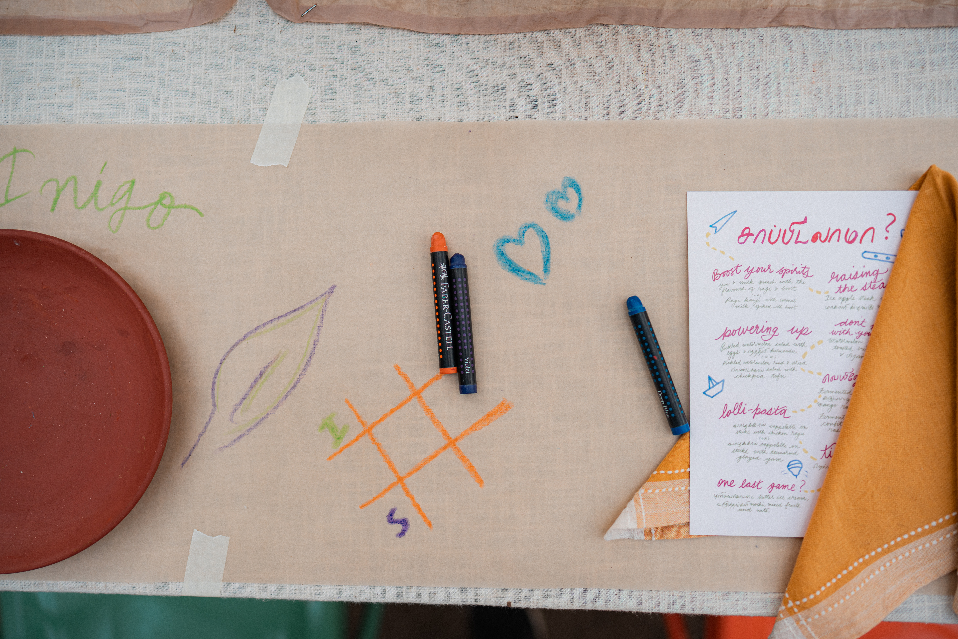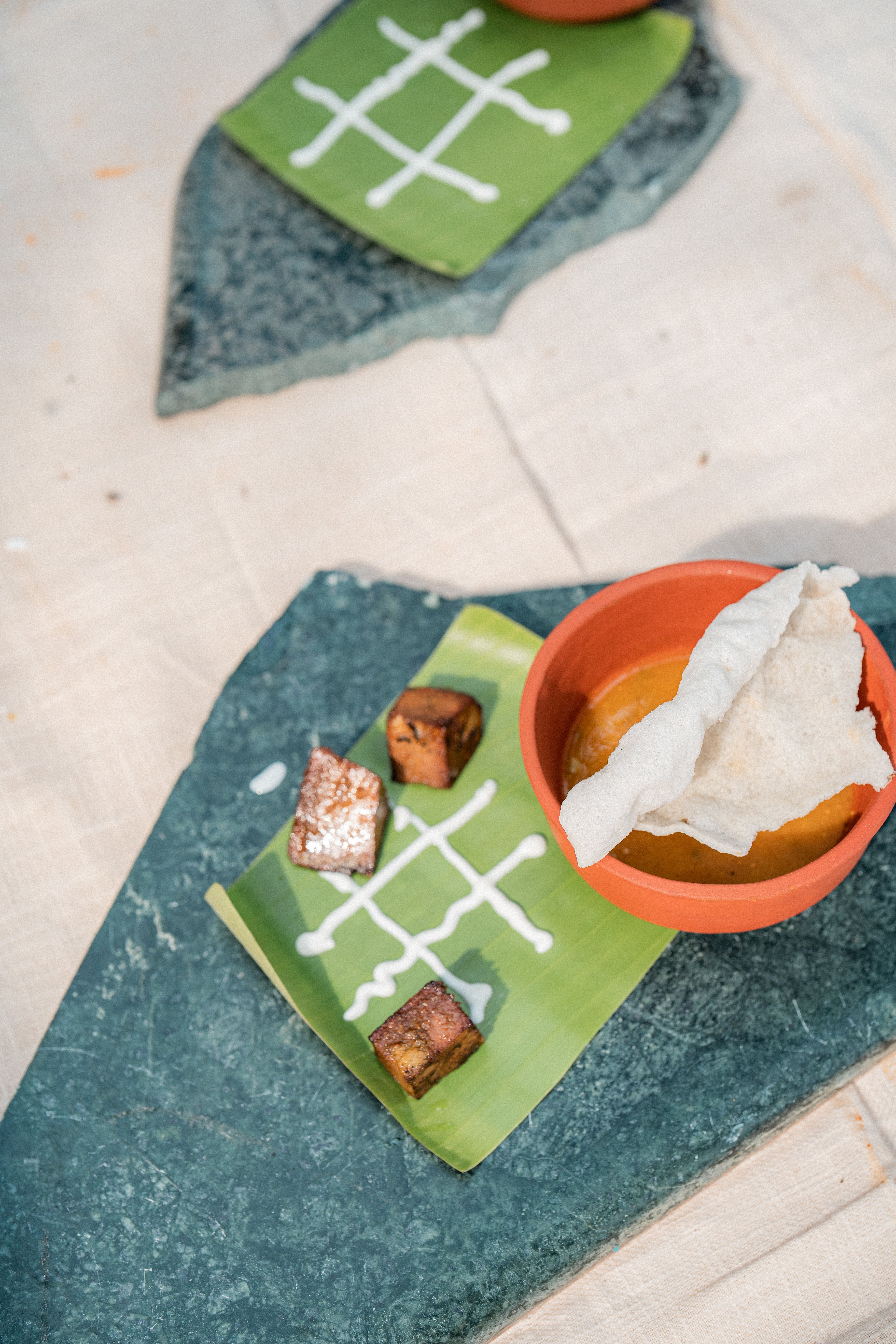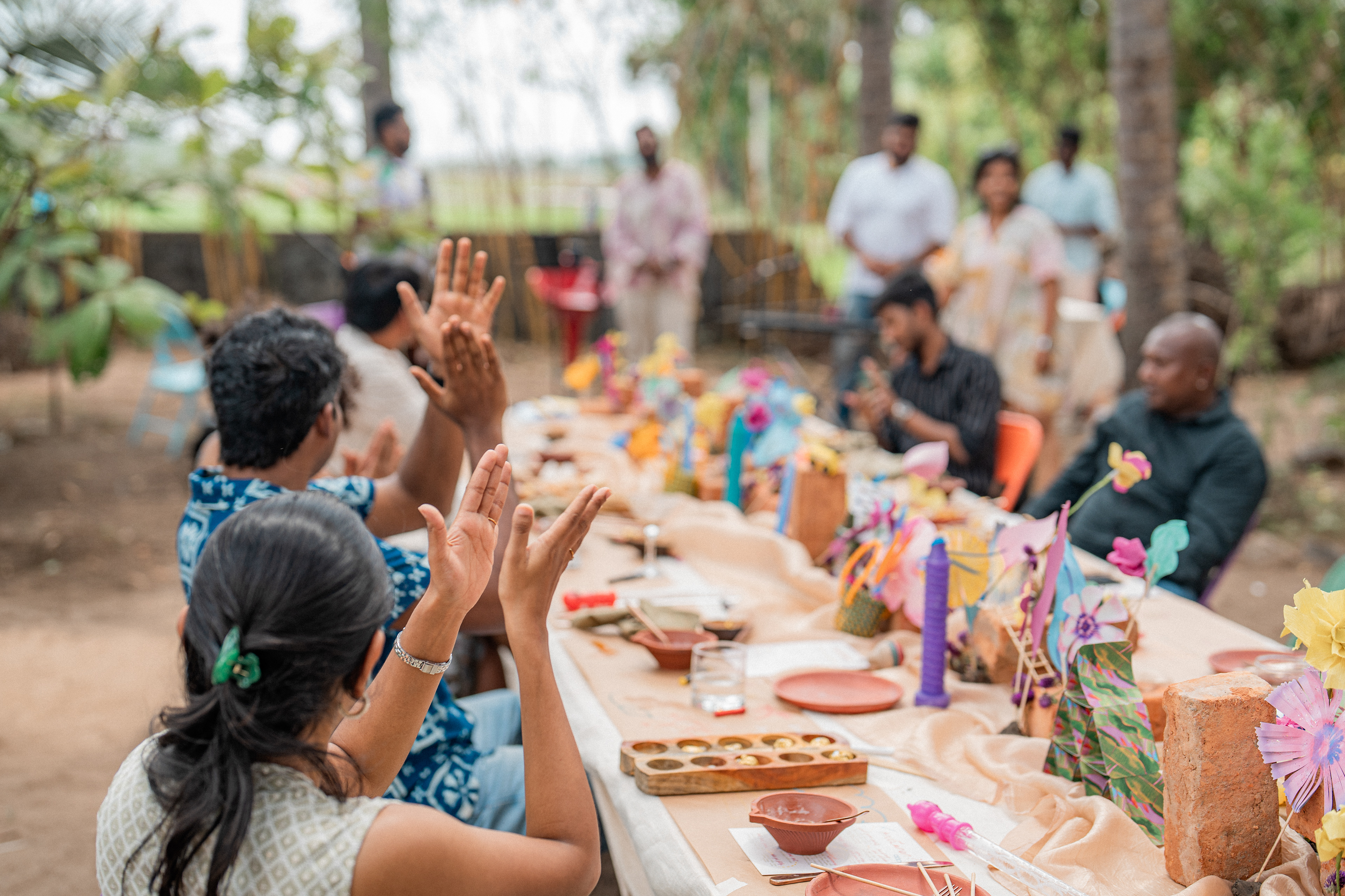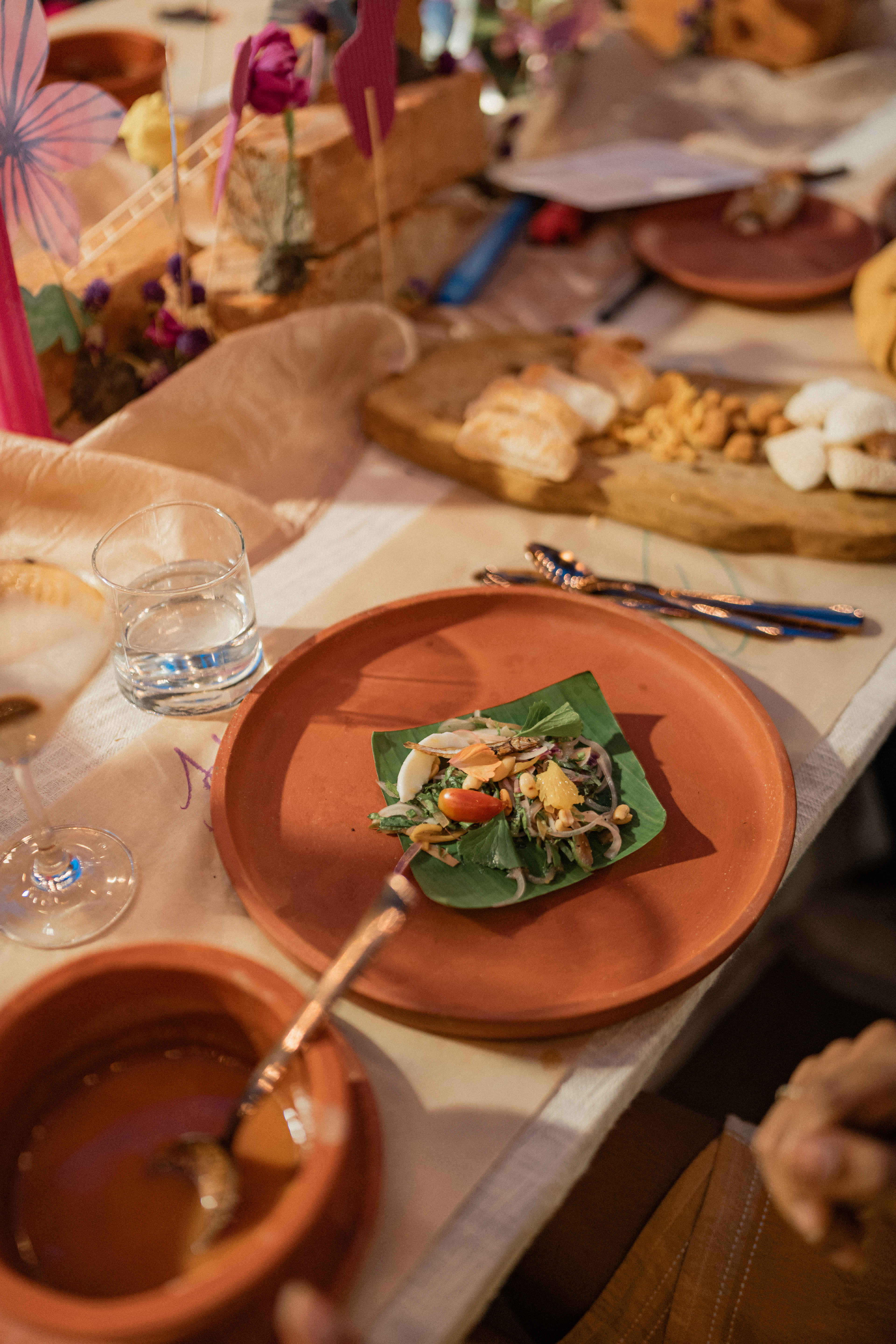 Three back to back services at Kelikkai, a curated meal pop up based on childhood games and our nostalgia around it. Every aspect of the meal came together so beautifully. Kadamba Vanam became a beautiful backdrop to the canvas we built, with a tablescape of playful elements that reminded us of childhood craftiness, bold colours and lots of playfulness. We sat together with a bunch of volunteers that were super enthusiastic to create these beautiful elements and spent an evening in creating crafty paper flowers and foliage. The menu brought together a lot of playful attempts at putting together elements that would otherwise seem very bizarre. We are incredibly grateful to the guests who were so so open to the experience that we had curated for them. Freshness Produce Partner: Madras Mandi Sponsors: Spirit of the Earth, The Perf Ice Candy and Ask for It