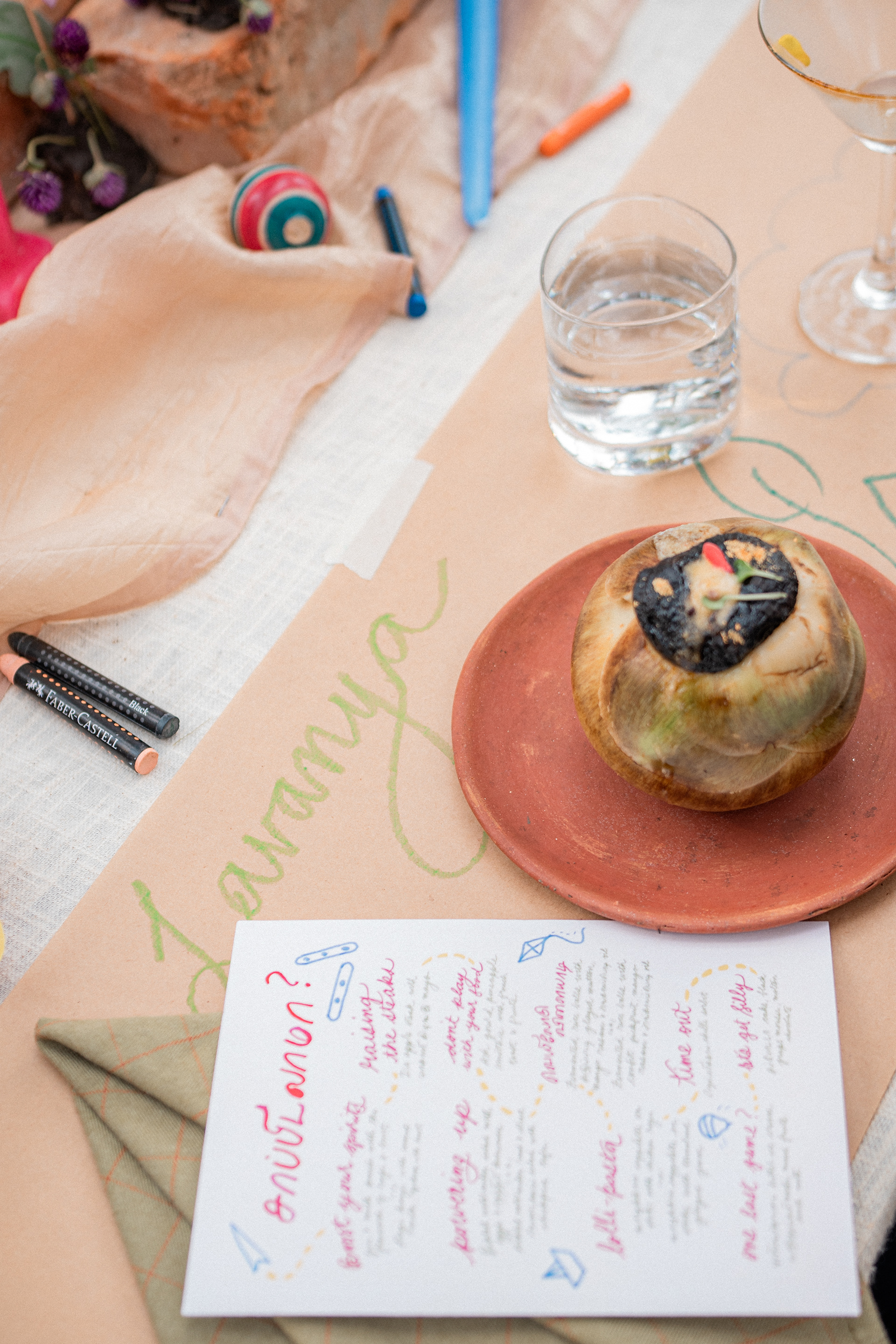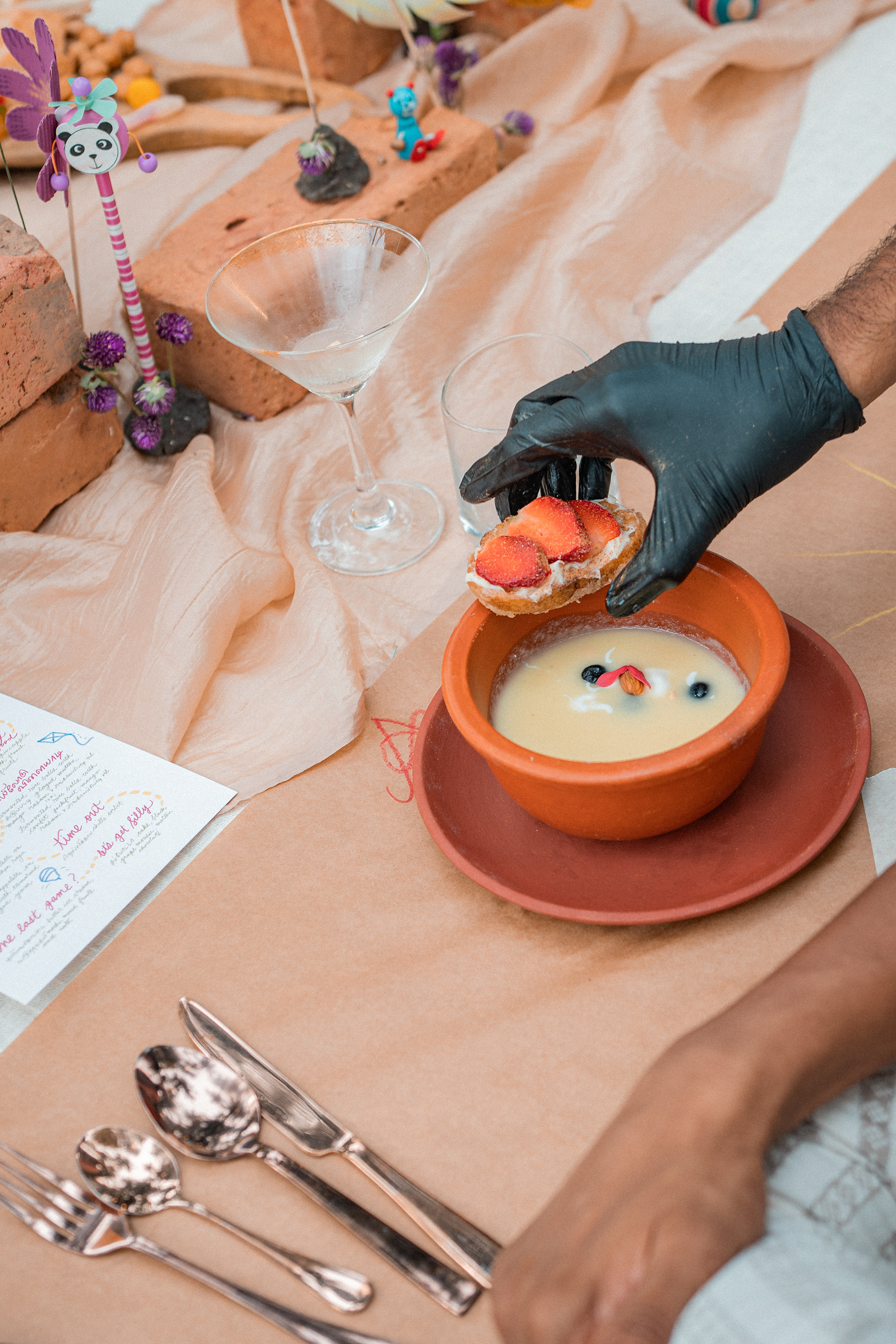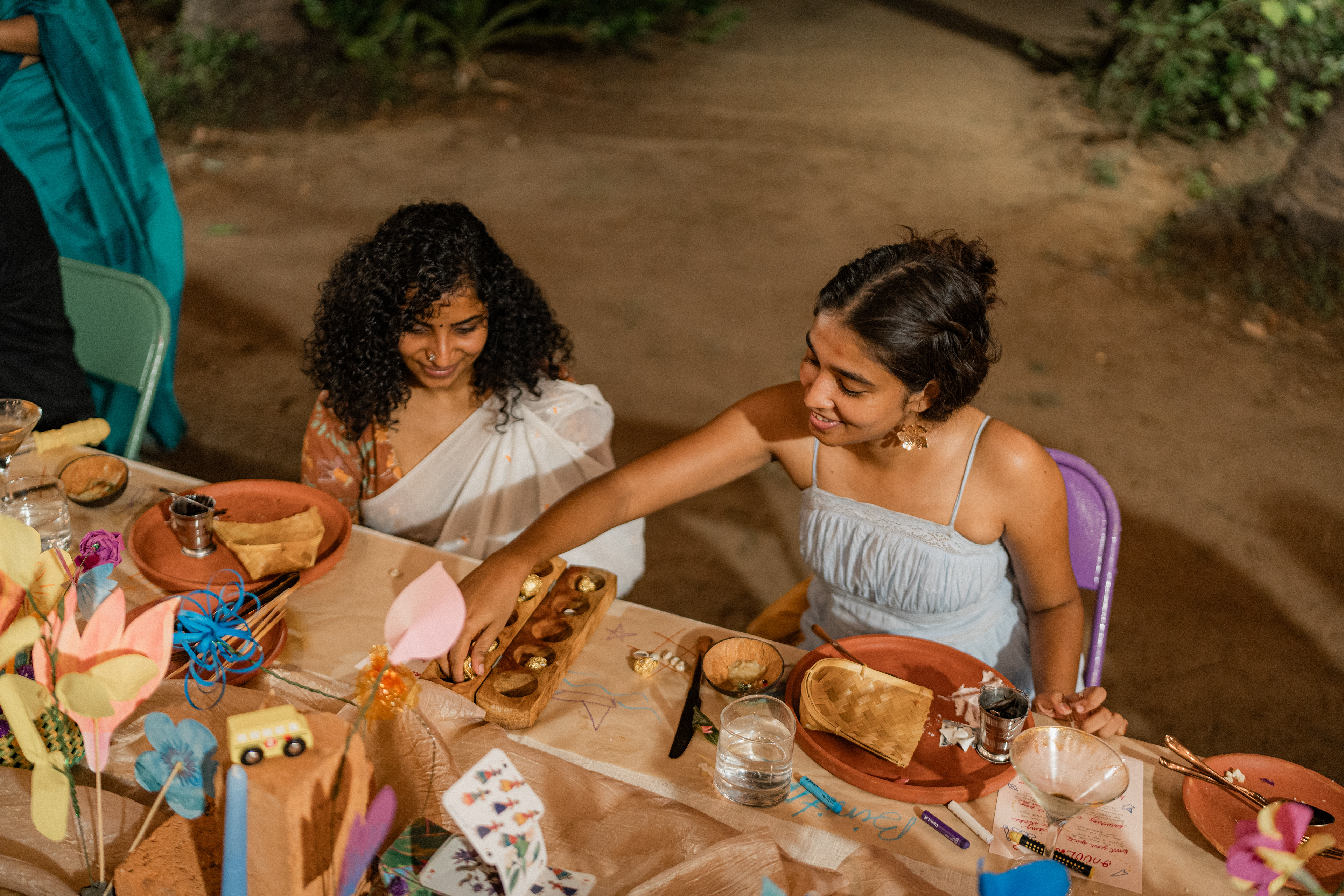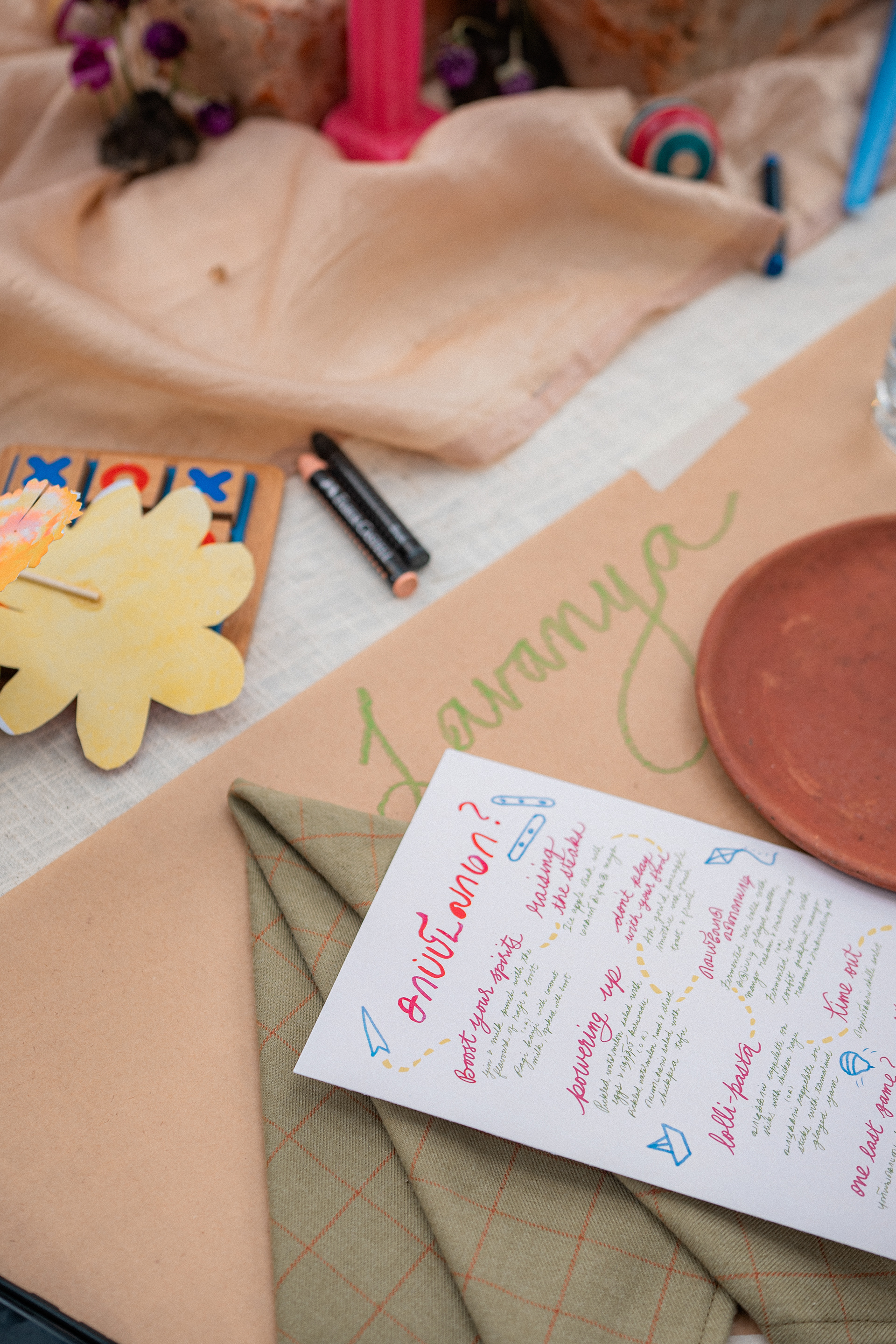 Three back to back services at Kelikkai, a curated meal pop up based on childhood games and our nostalgia around it. Every aspect of the meal came together so beautifully. Kadamba Vanam became a beautiful backdrop to the canvas we built, with a tablescape of playful elements that reminded us of childhood craftiness, bold colours and lots of playfulness. We sat together with a bunch of volunteers that were super enthusiastic to create these beautiful elements and spent an evening in creating crafty paper flowers and foliage. The menu brought together a lot of playful attempts at putting together elements that would otherwise seem very bizarre. We are incredibly grateful to the guests who were so so open to the experience that we had curated for them. Freshness Produce Partner: Madras Mandi Sponsors: Spirit of the Earth, The Perf Ice Candy and Ask for It
