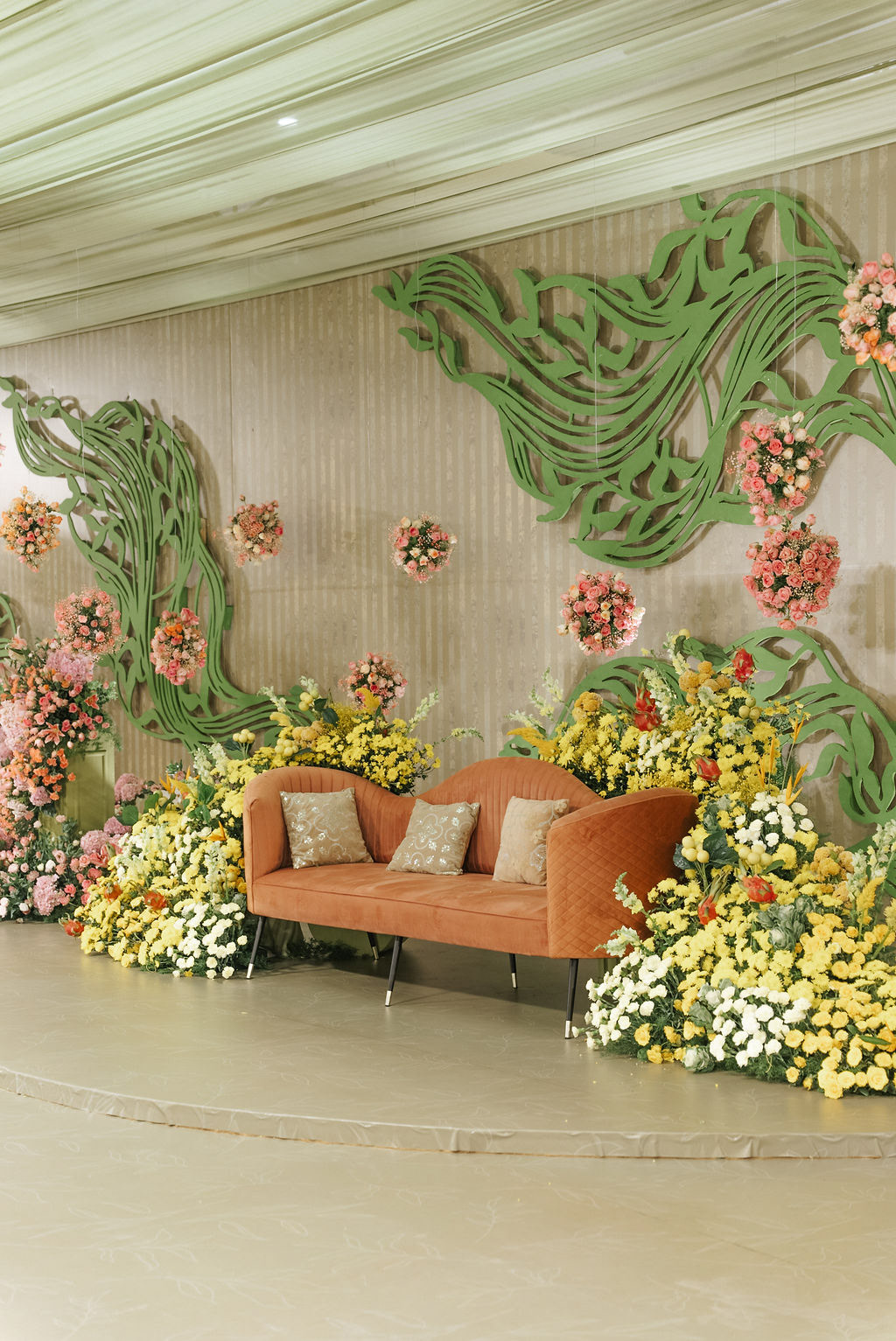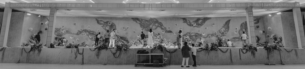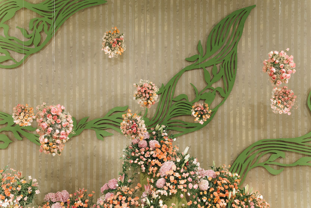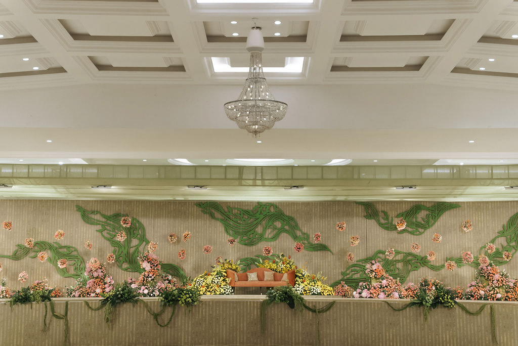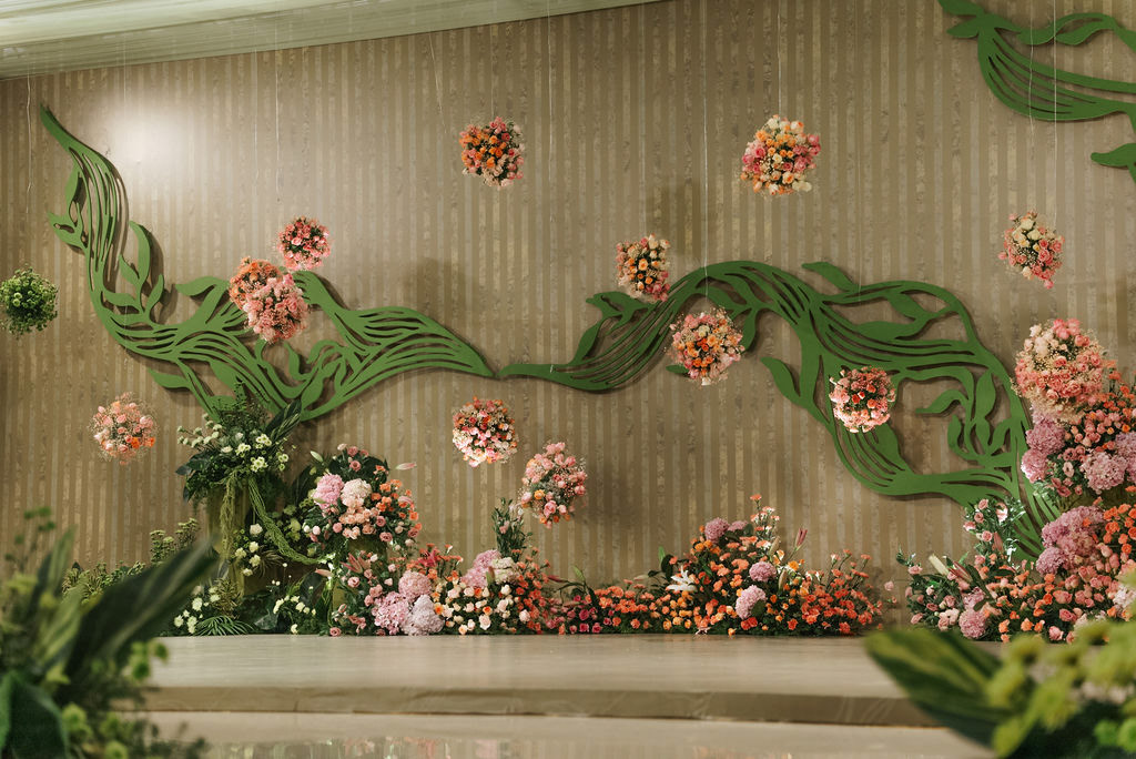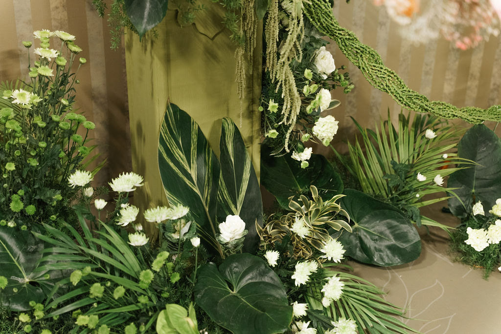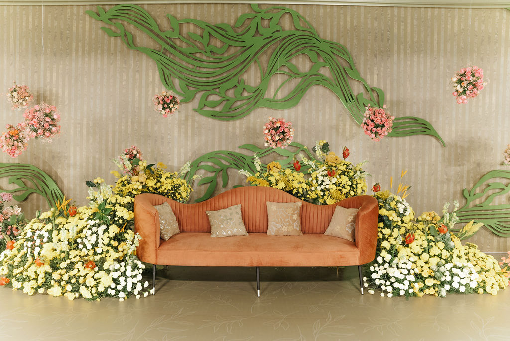 For Swathi and kabilan's reception stage, we chose a minimal, monotone approach with a subtle statement centrepiece. Working in monotones created a calm, refined base, allowing texture, light and form to stand out. Sculptural florals, relief patterns and tone-on-tone layers added depth, with soft blush pinks and gentle yellows at the core, finished with quiet green accents.