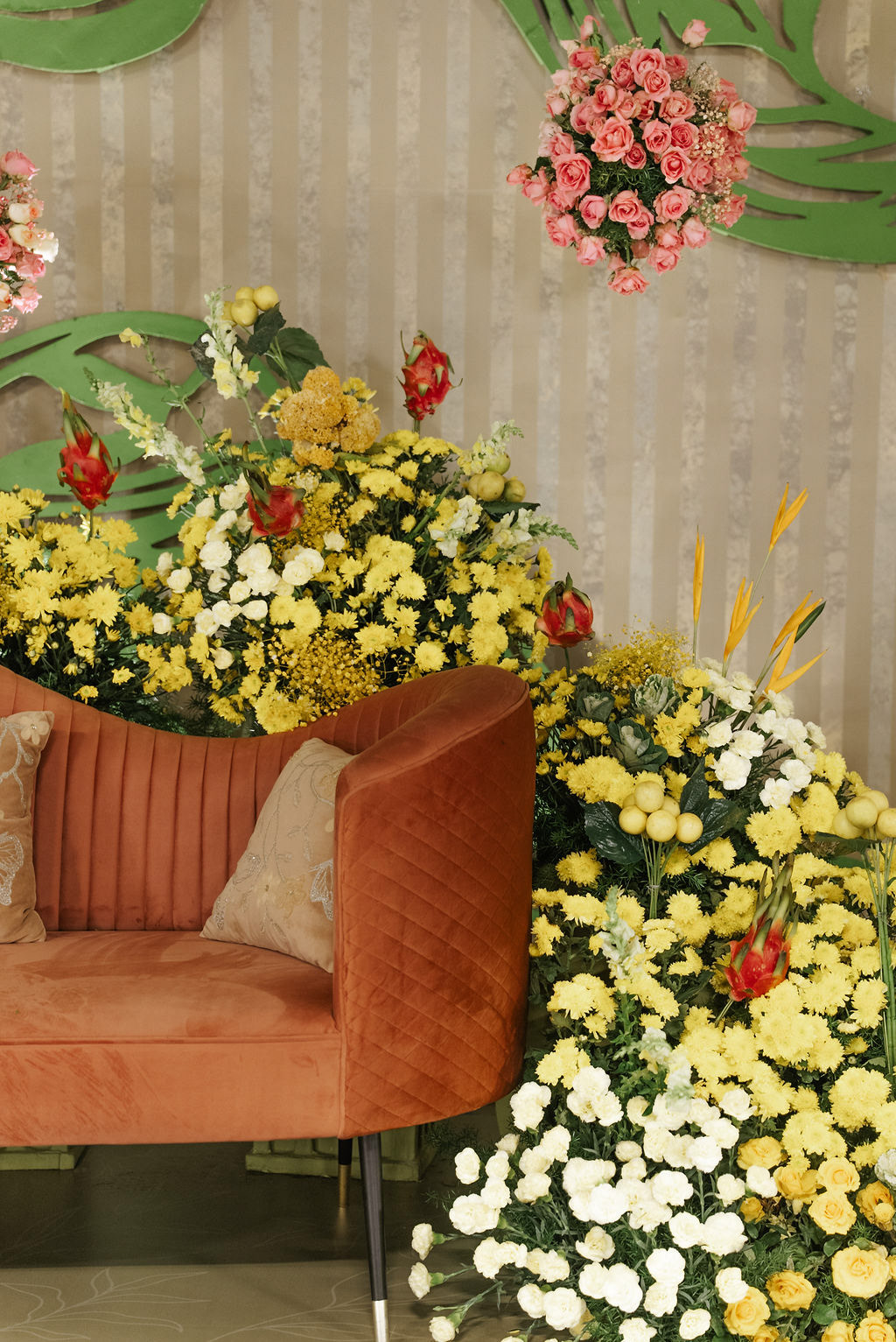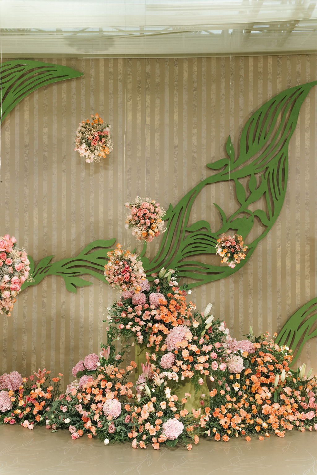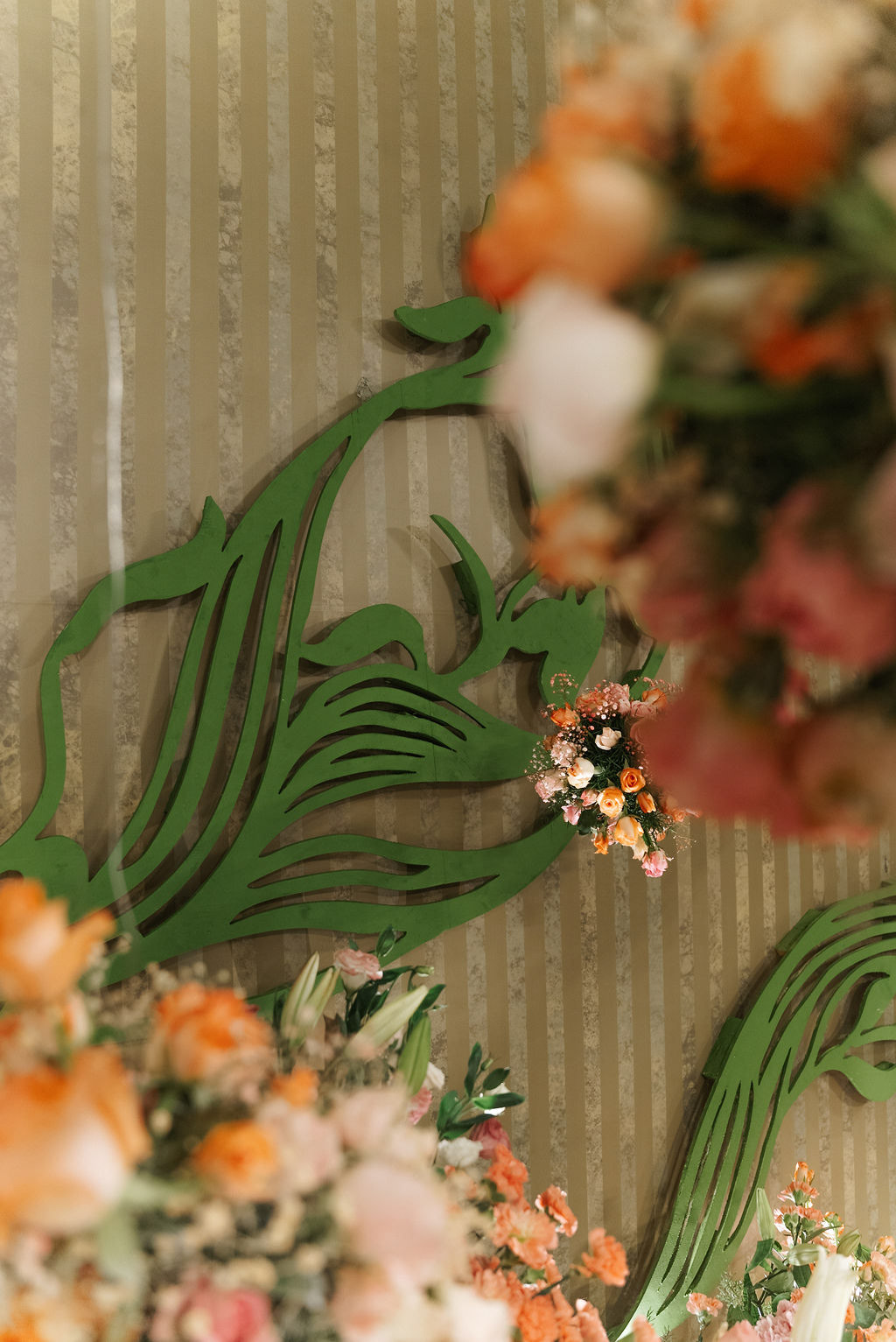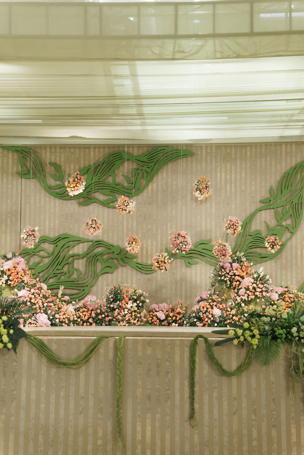 For Swathi and kabilan's reception stage, we chose a minimal, monotone approach with a subtle statement centrepiece. Working in monotones created a calm, refined base, allowing texture, light and form to stand out. Sculptural florals, relief patterns and tone-on-tone layers added depth, with soft blush pinks and gentle yellows at the core, finished with quiet green accents.