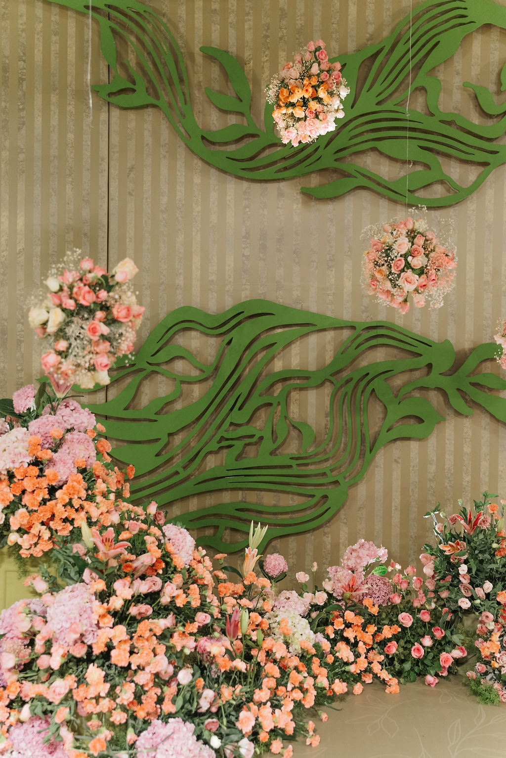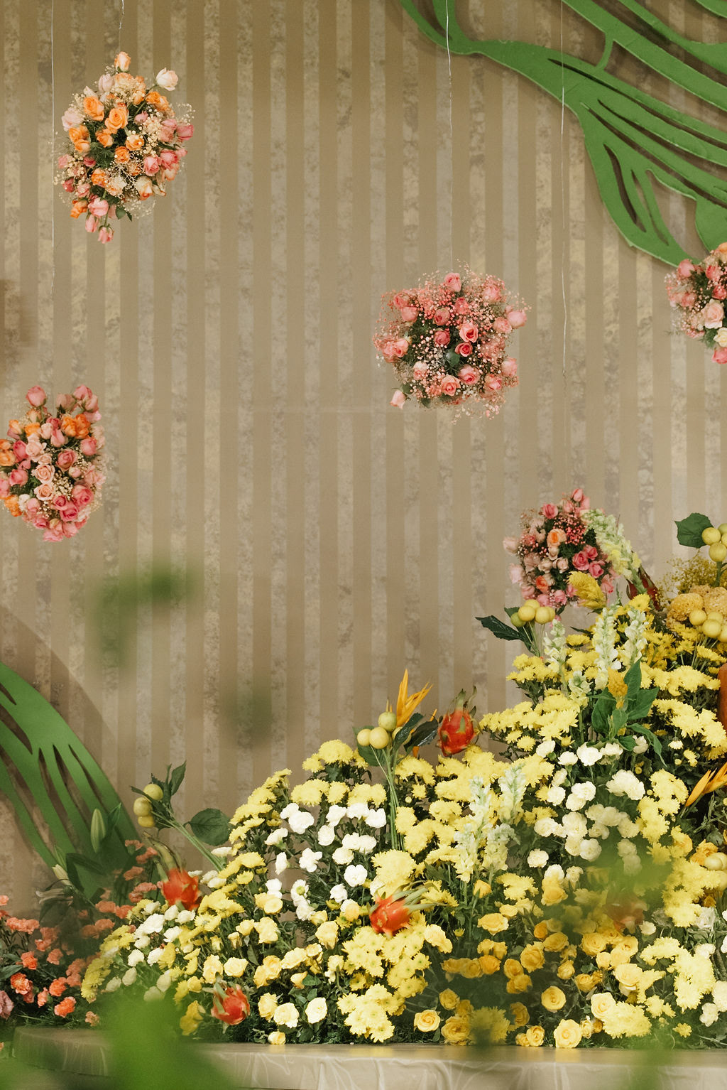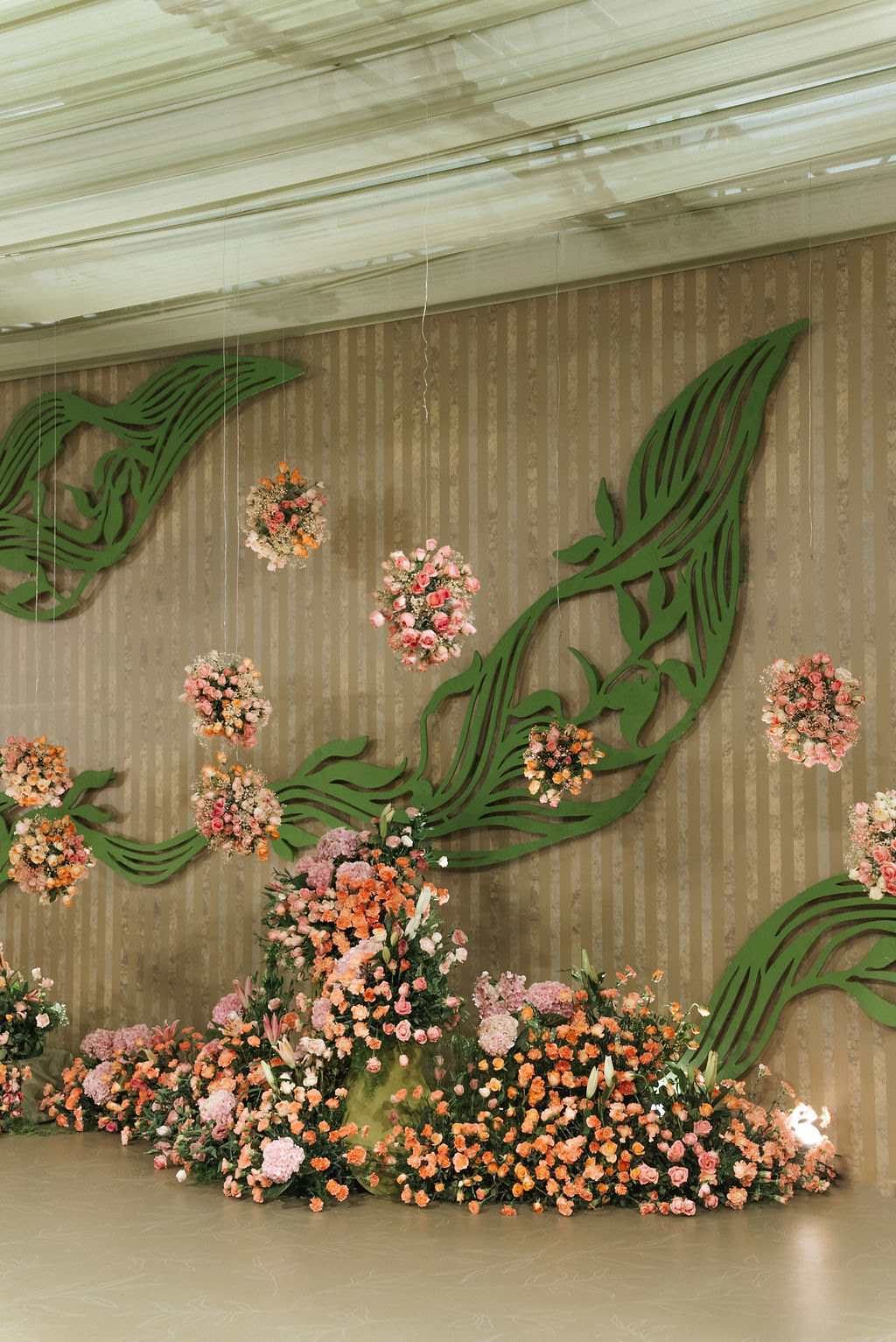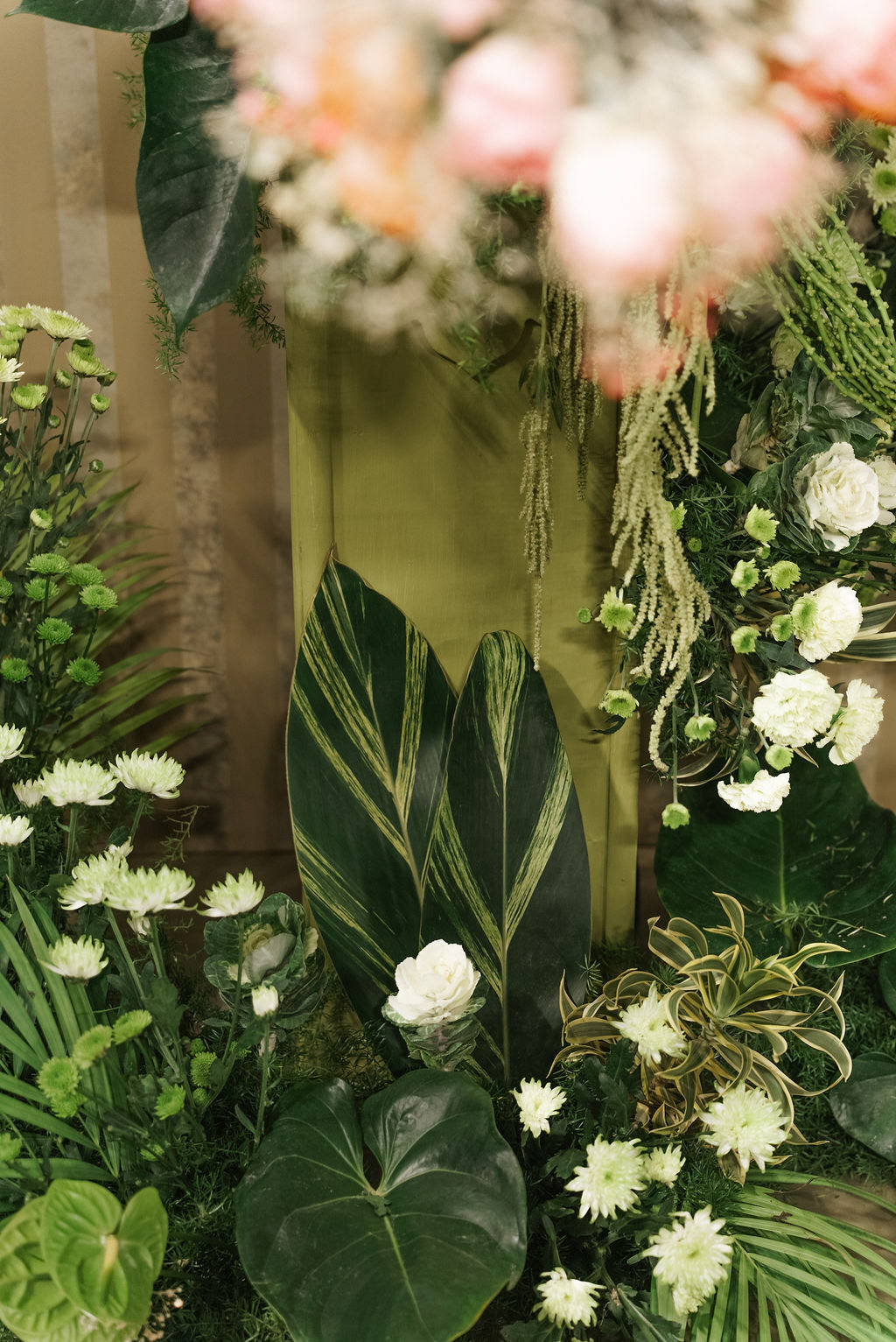 For Swathi and kabilan's reception stage, we chose a minimal, monotone approach with a subtle statement centrepiece. Working in monotones created a calm, refined base, allowing texture, light and form to stand out. Sculptural florals, relief patterns and tone-on-tone layers added depth, with soft blush pinks and gentle yellows at the core, finished with quiet green accents.