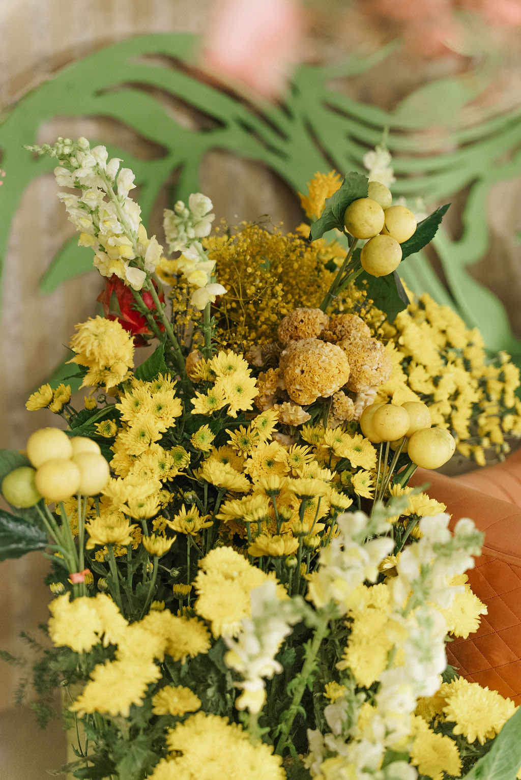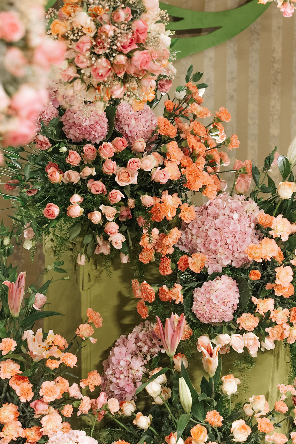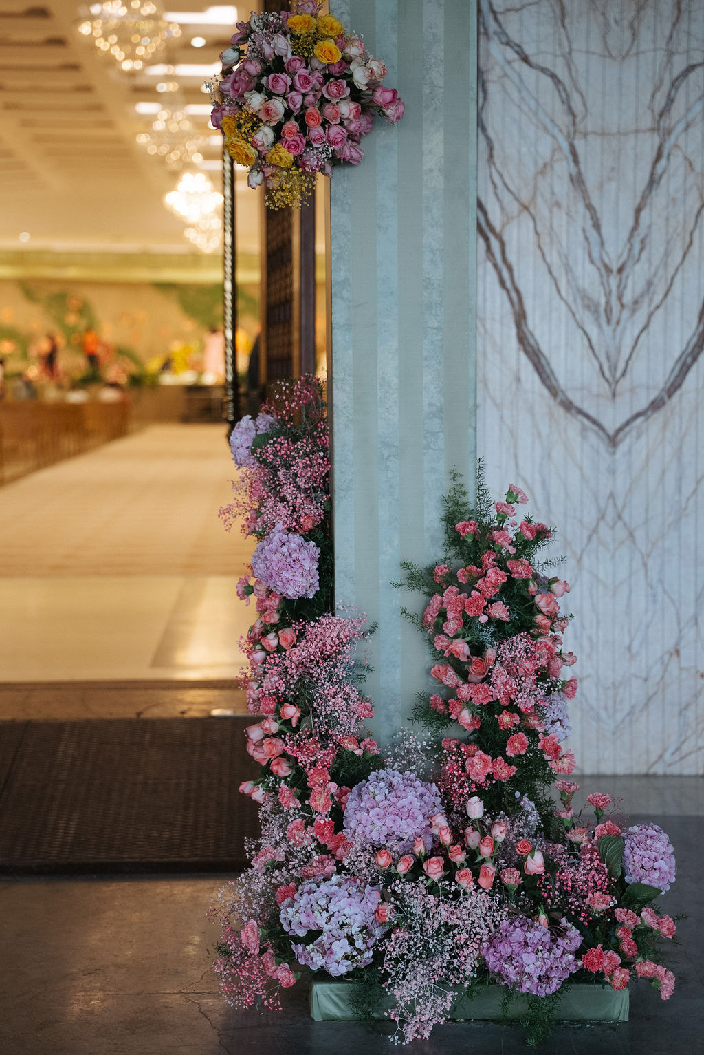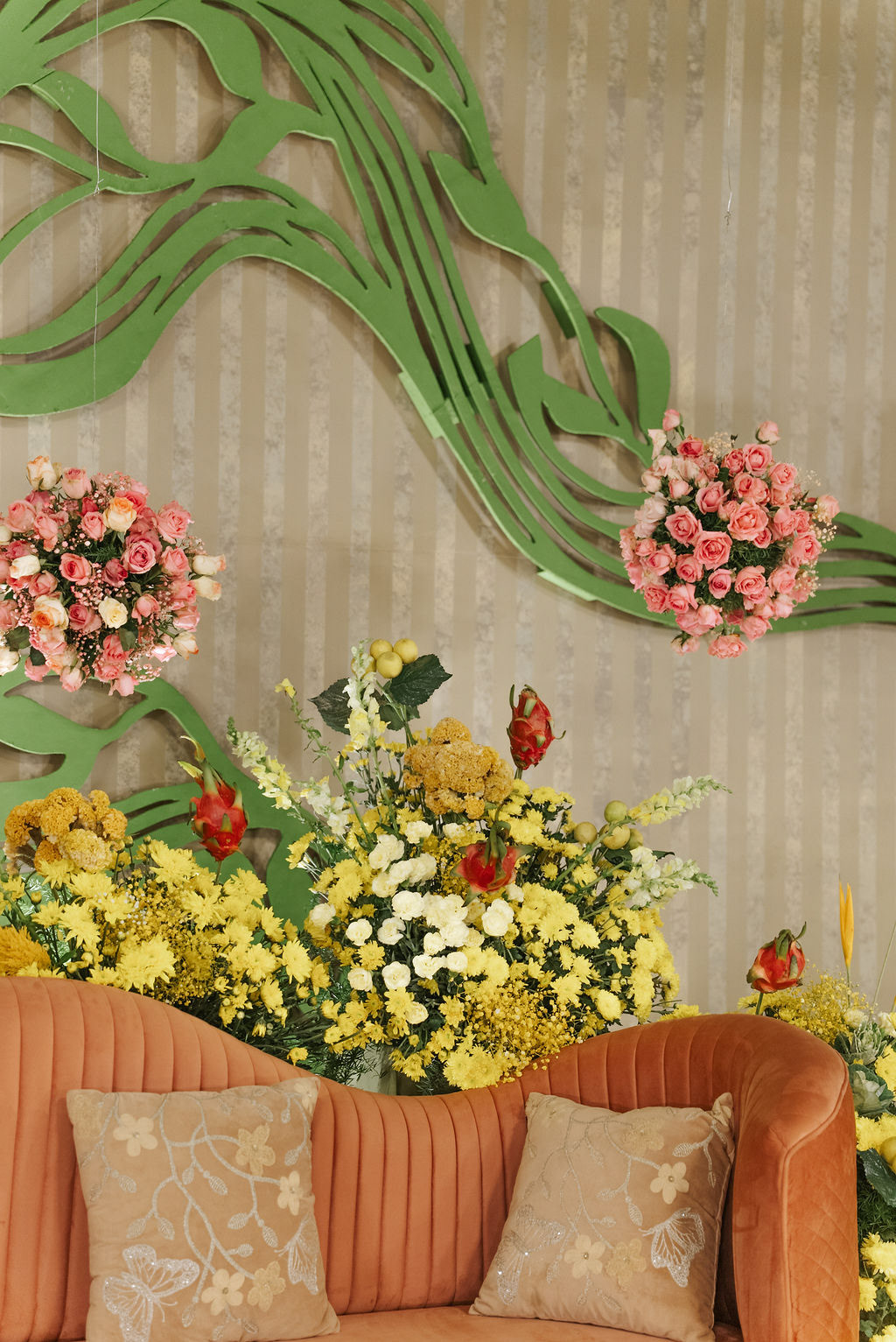 For Swathi and kabilan's reception stage, we chose a minimal, monotone approach with a subtle statement centrepiece. Working in monotones created a calm, refined base, allowing texture, light and form to stand out. Sculptural florals, relief patterns and tone-on-tone layers added depth, with soft blush pinks and gentle yellows at the core, finished with quiet green accents.