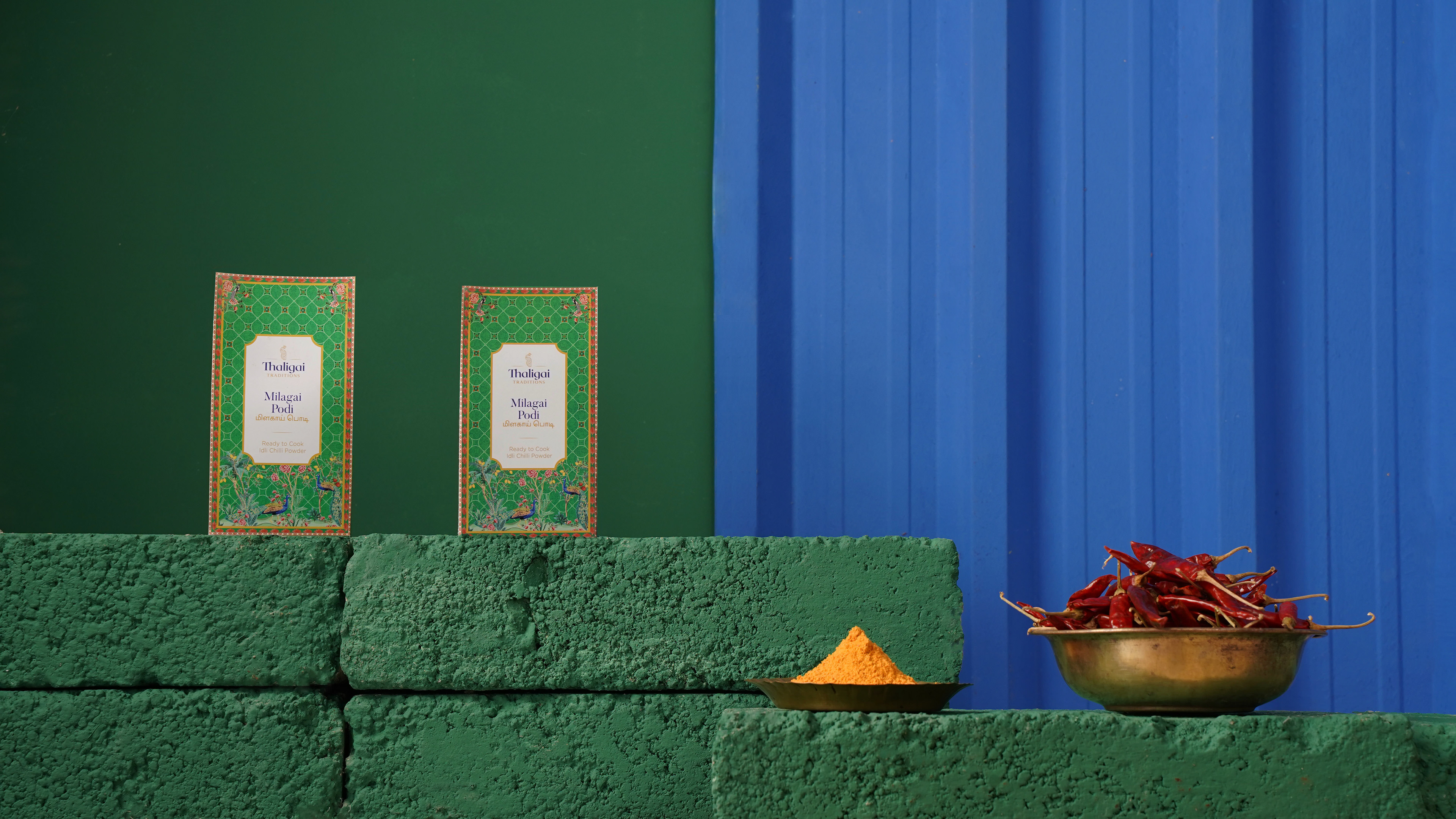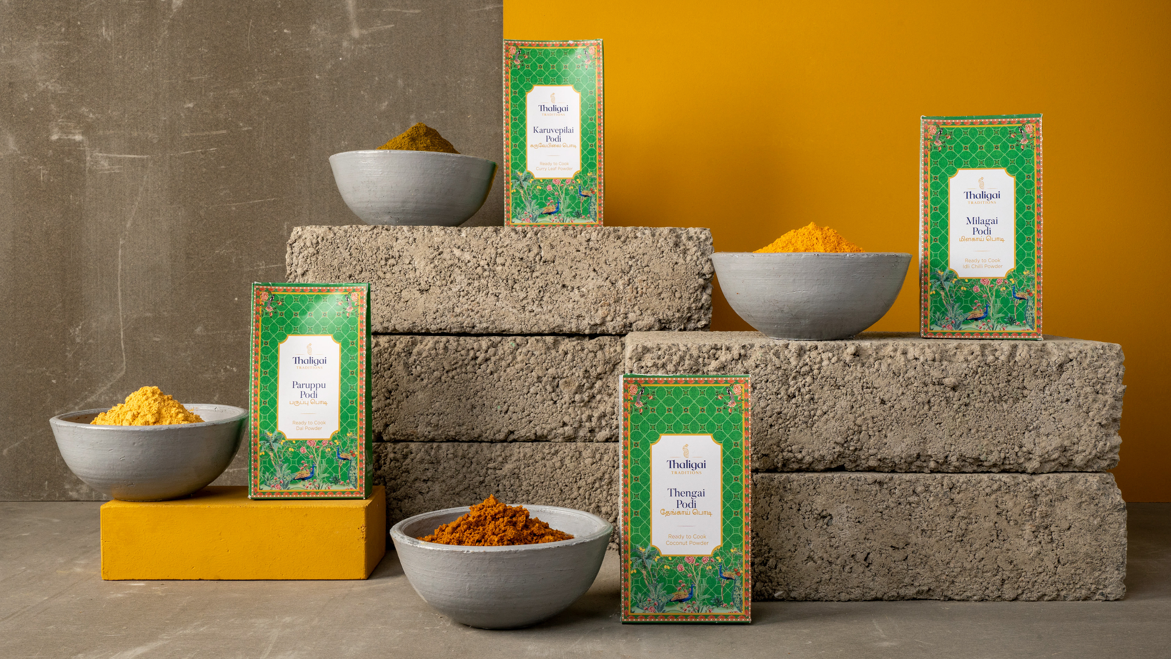When Thaligai approached us for a brand refresh, the challenge was taking a South Indian comfort staple and elevating it for an already saturated market. In the end, we decided to let the products speak for themselves - with a bold, yet minimal colourblocked styling, the geometry allowing for the beautiful packaging to stand out!